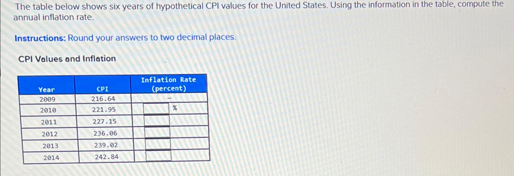 Solved The table below shows six years of hypothetical CPI