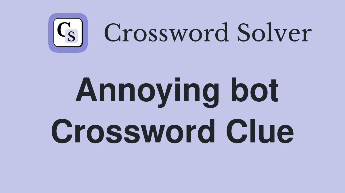 Here is the answer for the crossword clue internet bot. Here is the answer for the crossword clue crawling internet bot last seen in premier sunday puzzle. We will try to find the right answer to this particular crossword clue. We have found 40 possible. Let's find possible answers to “crawling” internet bot crossword clue.