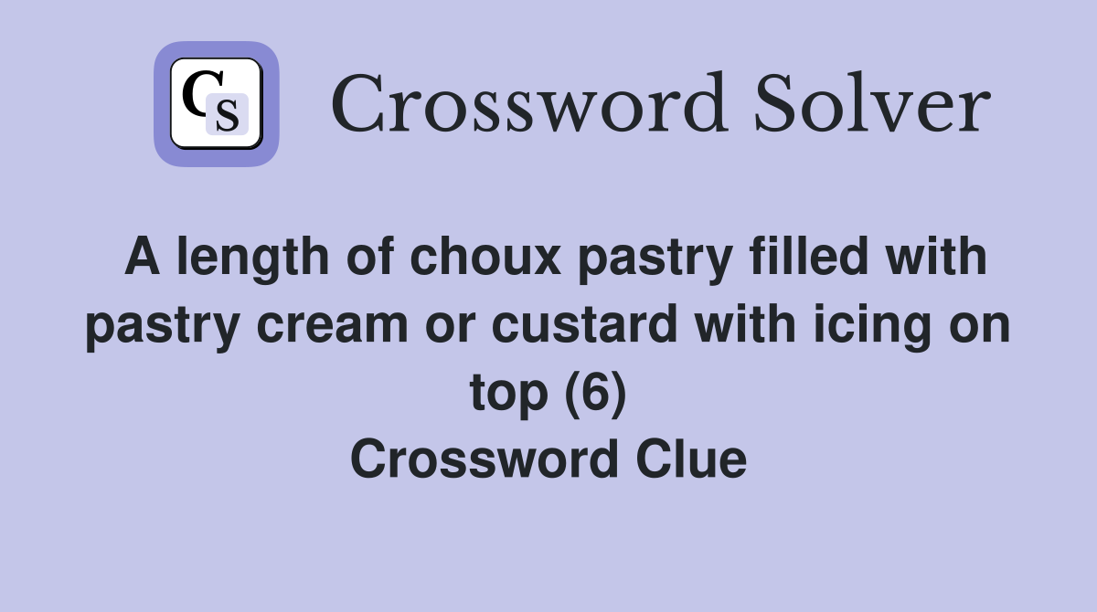 We have found 40 possible answers for this. There is one answer total, eclair is the most recent and it has 6 letters. We will try to find the right answer to this particular crossword clue. Today's crossword puzzle clue is a quick one: We will try to find the right answer to this particular crossword clue.