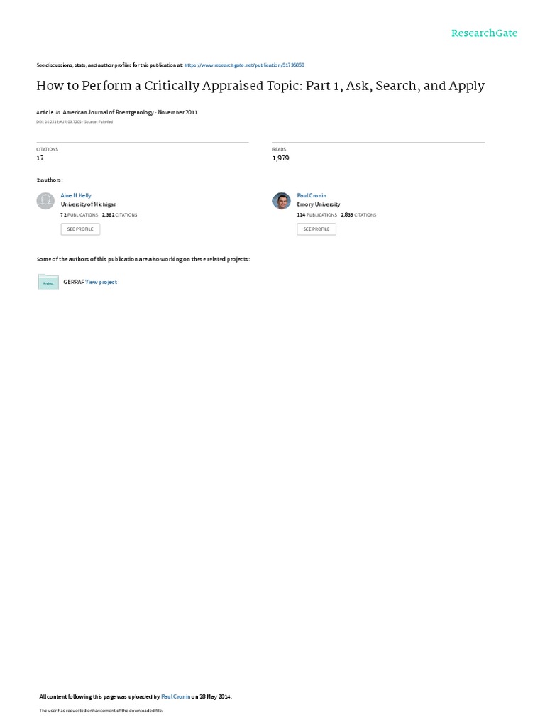 (PDF) How to Perform a Critically Appraised Topic Part 1, Ask, Search