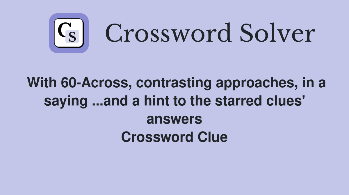 With 60Across, contrasting approaches, in a sayingand a hint to