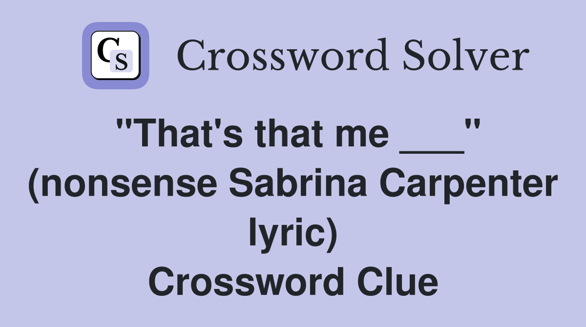 "That's that me ___" (nonsense Sabrina Carpenter lyric) Crossword