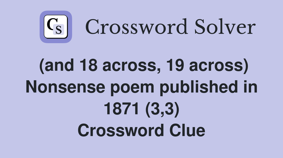 (and 18 across, 19 across) Nonsense poem published in 1871 (3,3