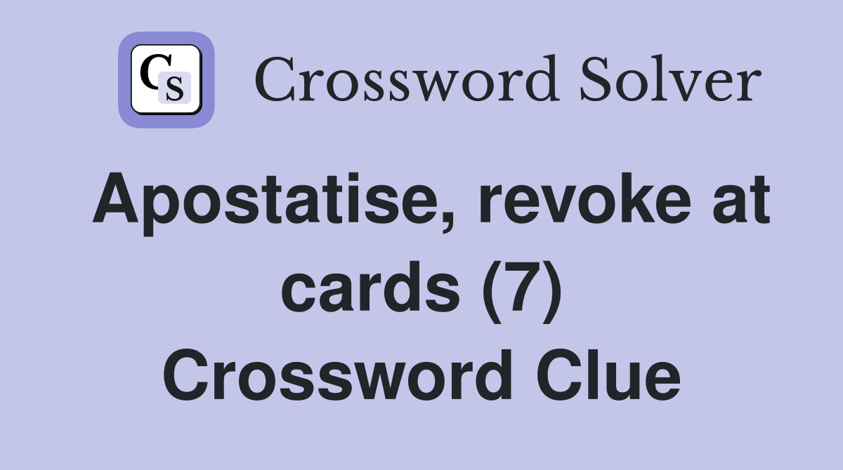 Apostatise, revoke at cards (7) Crossword Clue Answers Crossword Solver