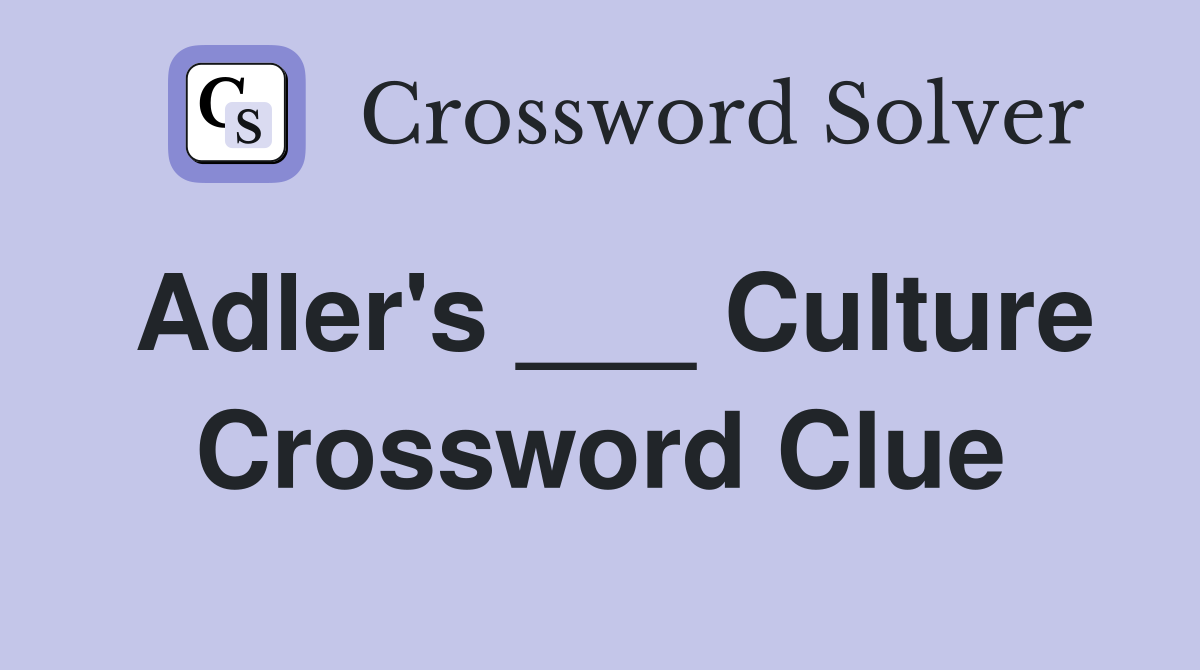 Adler's ___ Culture Crossword Clue Answers Crossword Solver