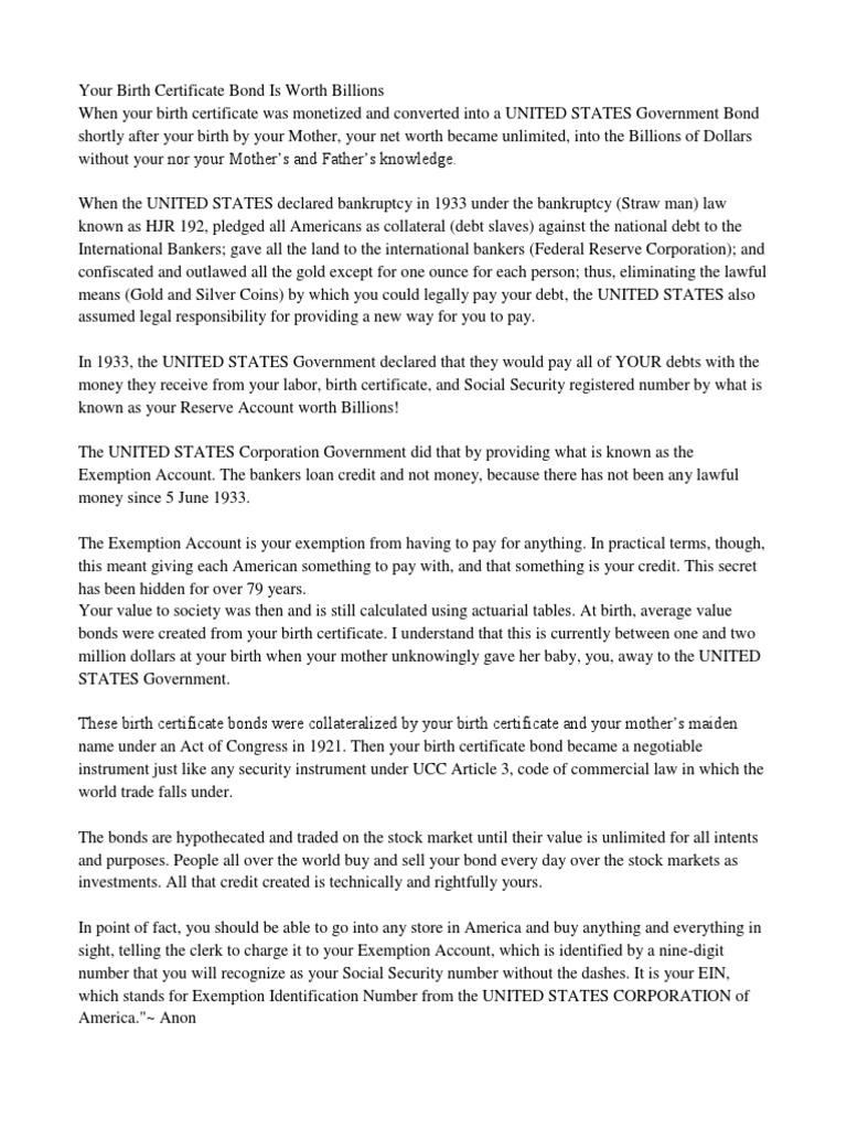 Your Birth Certificate Bond Is Worth BillionsBirth Certificate Bond