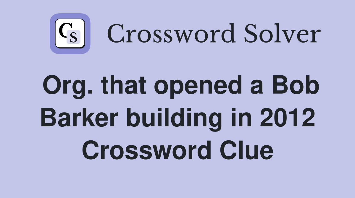 Org. that opened a Bob Barker building in 2012 Crossword Clue Answers