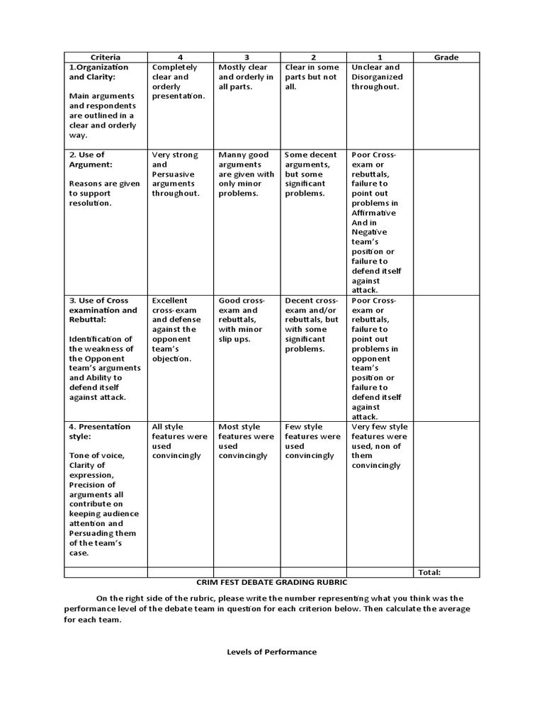 (PDF) Debate Grading Rubric Performance Levels for Affirmative Team