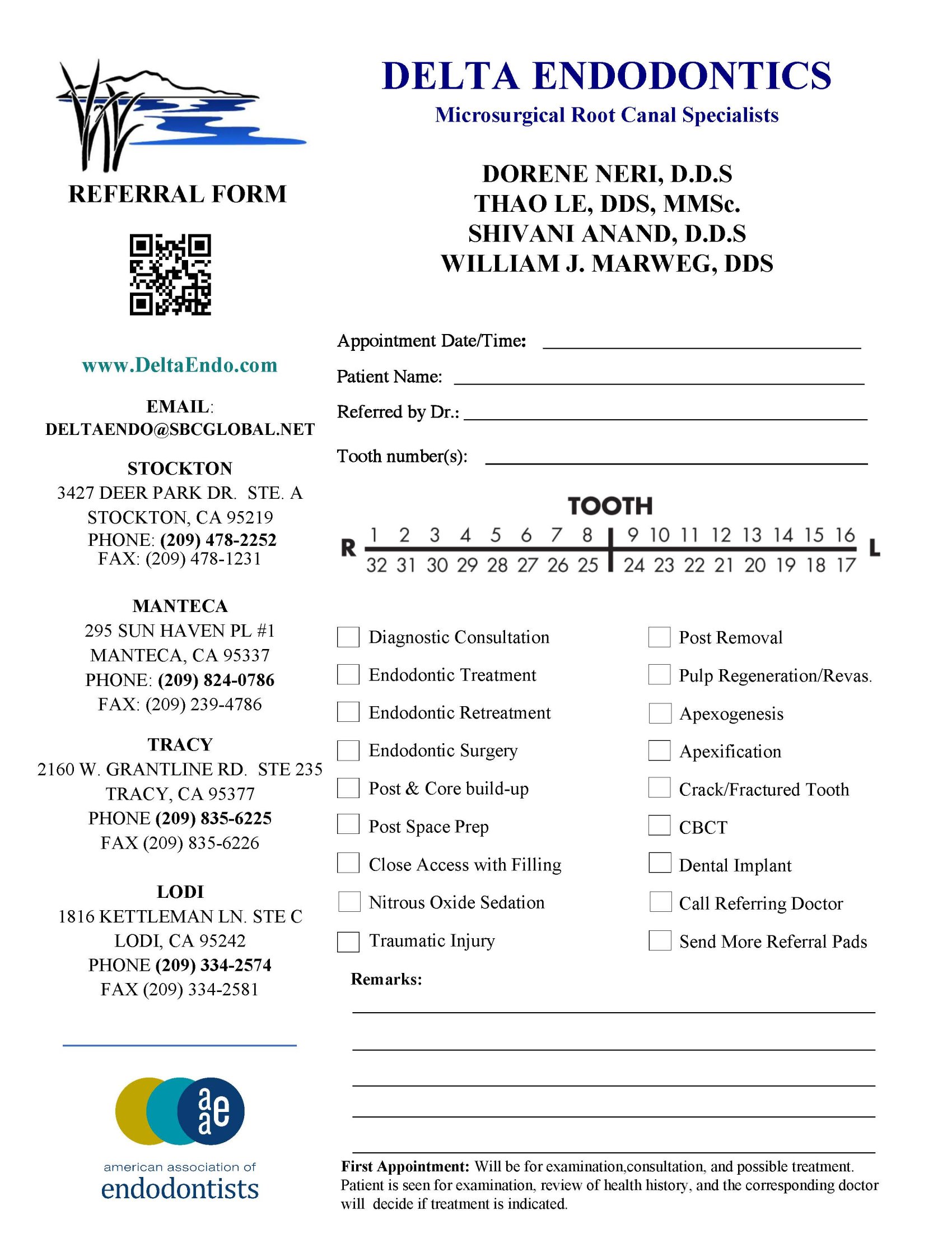This specialty care referral is only for those procedures listed above. Otherwise, the form will be. For direct referral to a deltacare usa network specialist, complete the form and attach needed radiographs and charting. Please contact the referring doctor if additional. The general dentist has determined these procedures to be beyond.