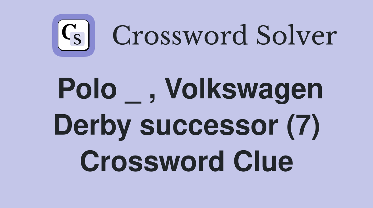 Polo _ , Volkswagen Derby successor (7) Crossword Clue Answers