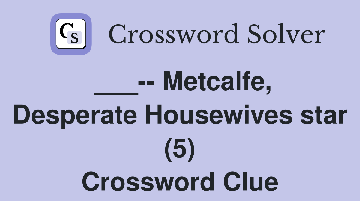 Metcalfe, Desperate Housewives star (5) Crossword Clue Answers