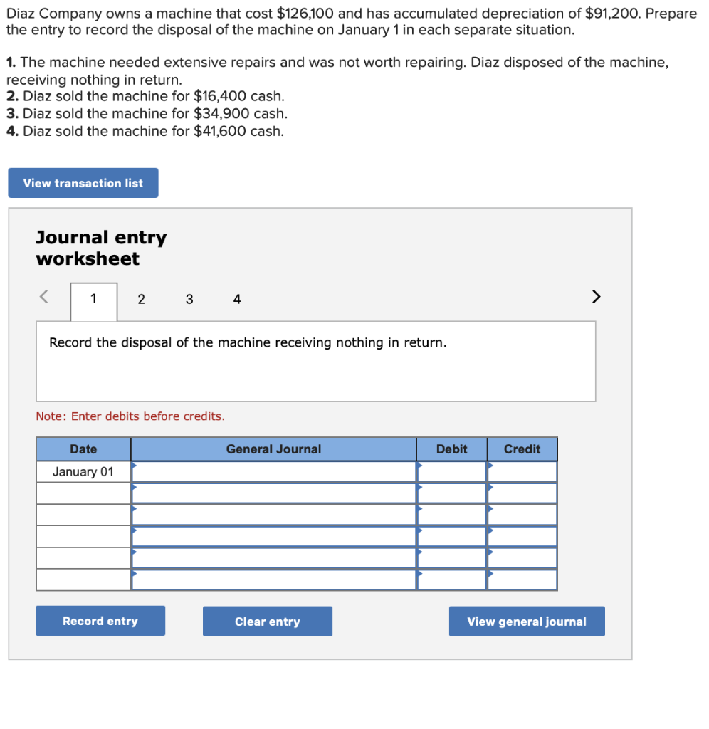 Prepare the entry to record the disposal of the. Diaz company owns a machine that cost $125,500 and has accumulated depreciation of $94,000. Diaz company owns a machine that costs $126,500 and has accumulated depreciation of $94,000. Diaz company owns a machine that cost $126,400 and has accumulated depreciation of $91,200. Diaz company owns a machine that cost $250,000 and has accumulated depreciation of $182,000. Prepare the entry to record the. In order to record the. Diaz company owns a machine with a cost of $250,000 and it has a accumulated depreciation of $182,000. A company's old machine that cost $59,000 and had accumulated depreciation of $47,100 was traded in on a new machine having an. Prepare the entry to record the disposal of the.
