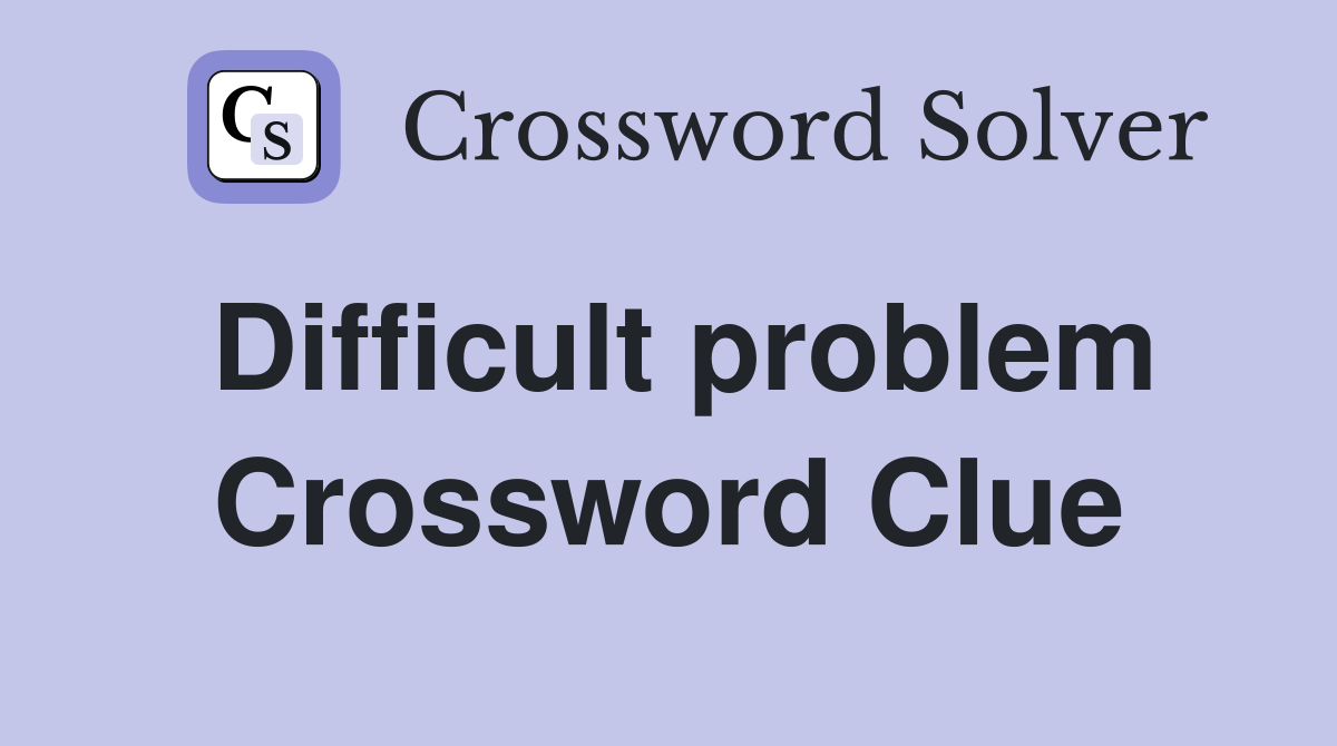 Here are the possible solutions for difficult problem clue. Here are all the answers for difficult problem crossword clue to help you solve the crossword puzzle you're working on! Find 7 possible solutions for the crossword clue difficult problem, ranging from 3 to 9 letters. The most common solutions for the crossword clue difficult problem are toughie with 7 letters, stumper with 7 letters, dilemma with.