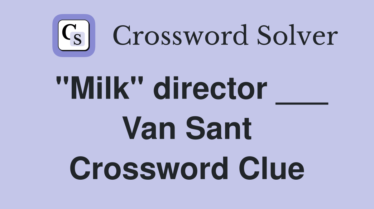 The answer to milk director van sant is gus. Here is the answer for the crossword clue film director van sant featured on december 31, 2011. The crossword solver found 30 answers to director van sant, 3 letters crossword clue. Our database has 1 possible answer. This clue was last seen on.