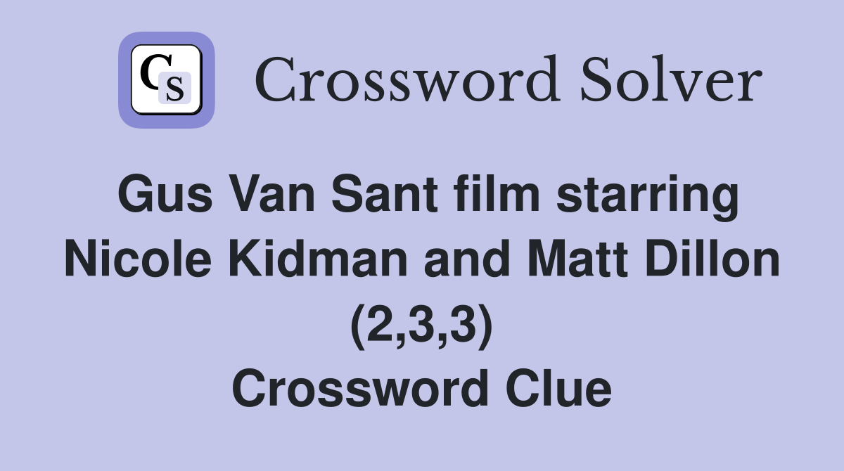 The crossword solver finds answers to classic. On this page you will find the director van sant crossword puzzle clue answers and solutions. The crossword solver found 30 answers to director van sant, 3 letters crossword clue. Here is the answer for the crossword clue film director van sant featured on december 31, 2011. The answer to director van sant.