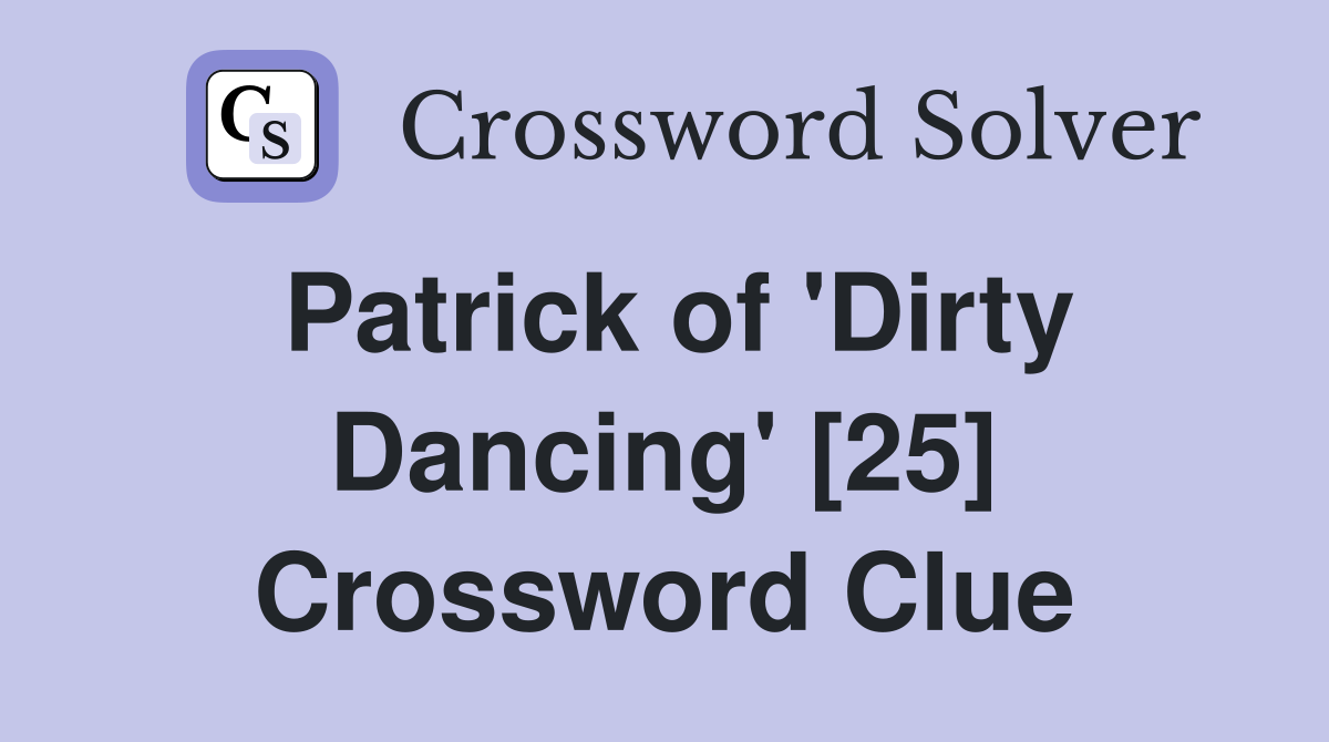 Patrick of 'Dirty Dancing' [25] Crossword Clue Answers Crossword Solver