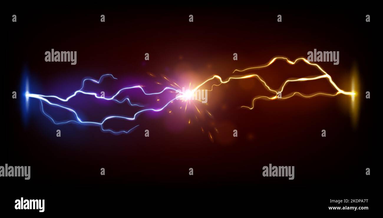 Lightning vs thunderbolt. Electric blue and orange energy battle