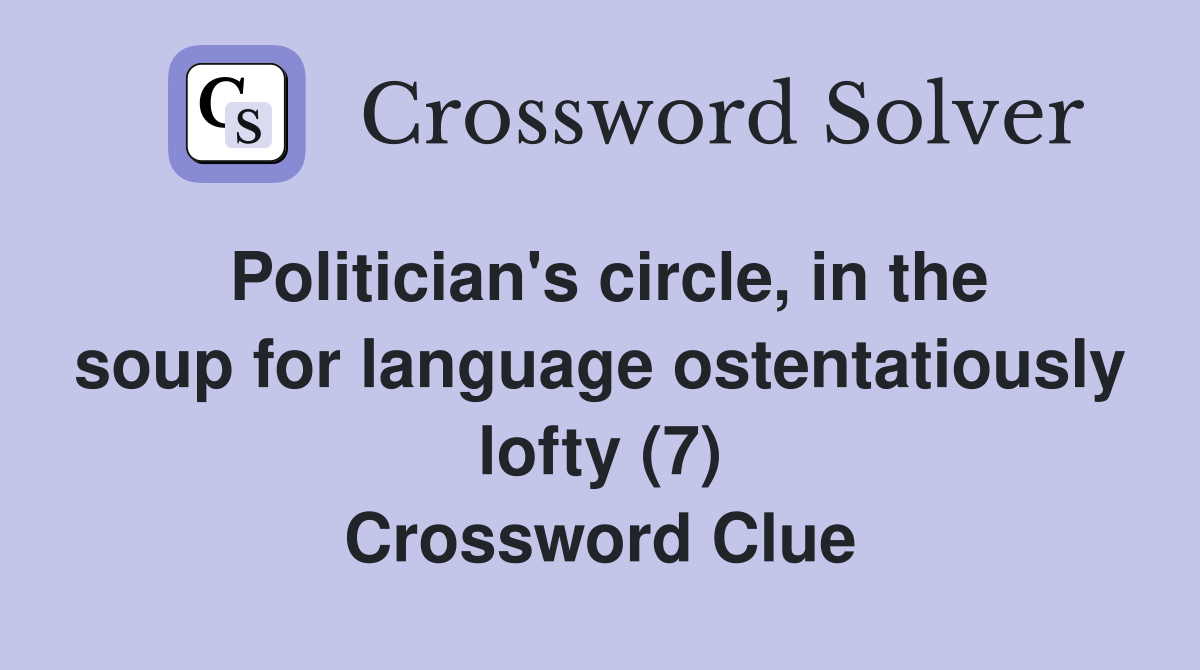 Politician's circle, in the soup for language ostentatiously lofty (7
