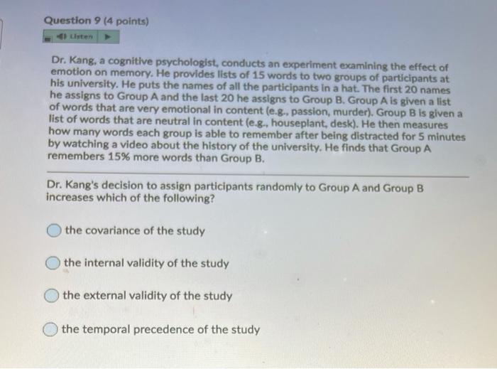 Solved Question 9 (4 points) Listen Dr. Kang, a cognitive
