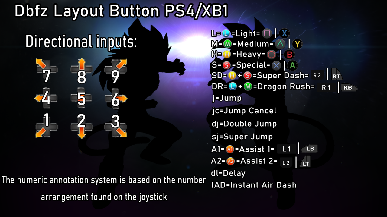 Dragon ball fighterz uses a layout very familiar to fighting game players. Light attack top face button:. This is the default control scheme for players who are using a ps4 controler, with the xbox one controls being listed in brackets. The basic controls for most standard controllers are as follows: Controls 8 directions, 6 buttons.