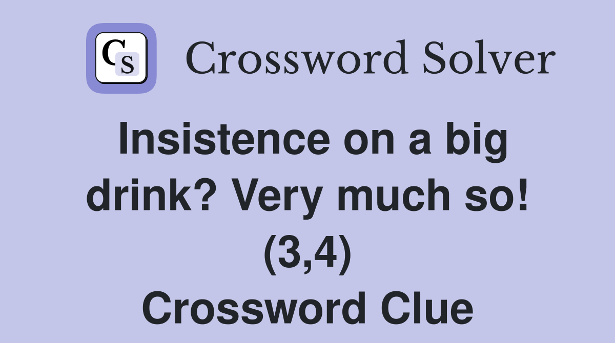 Insistence on a big drink? Very much so! (3,4) Crossword Clue Answers