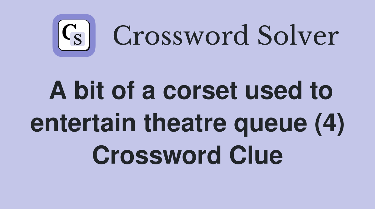 A bit of a corset used to entertain theatre queue (4) Crossword Clue