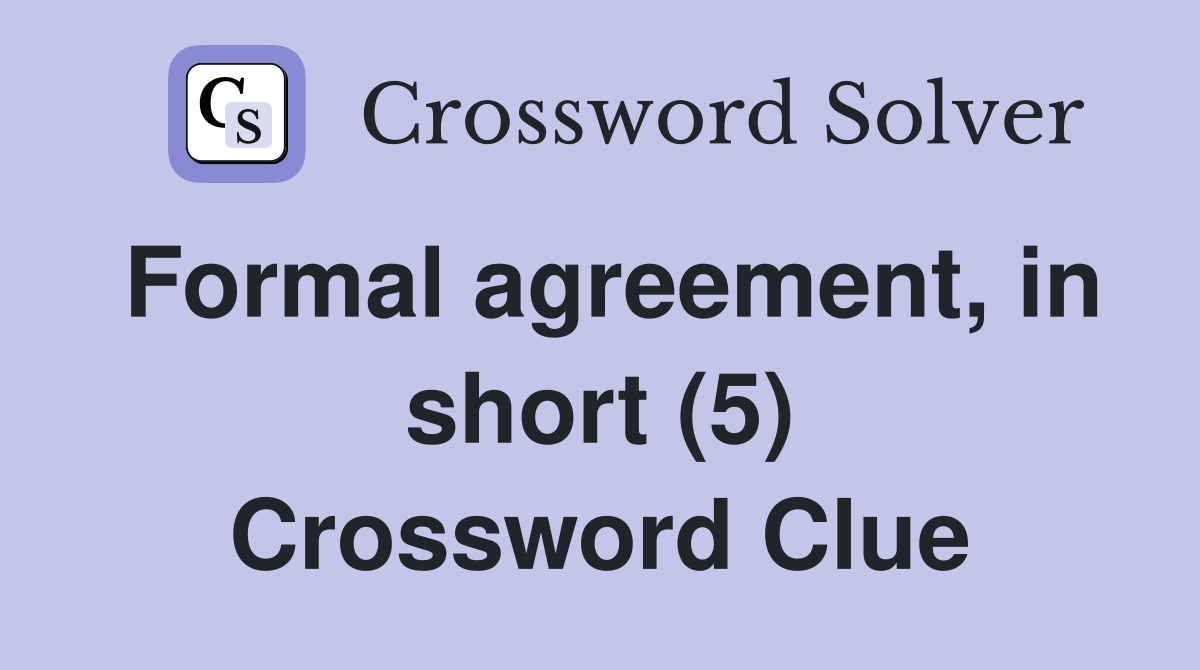 Formal agreement, in short (5) Crossword Clue Answers Crossword Solver