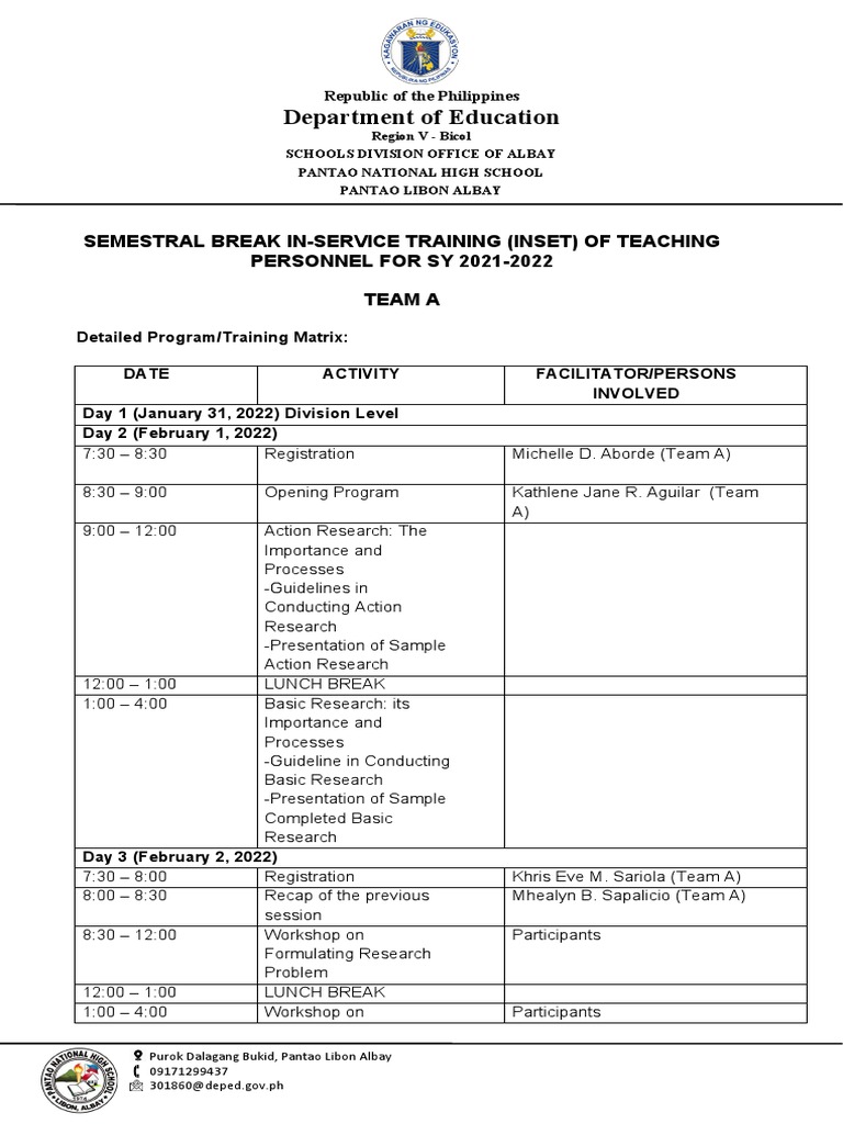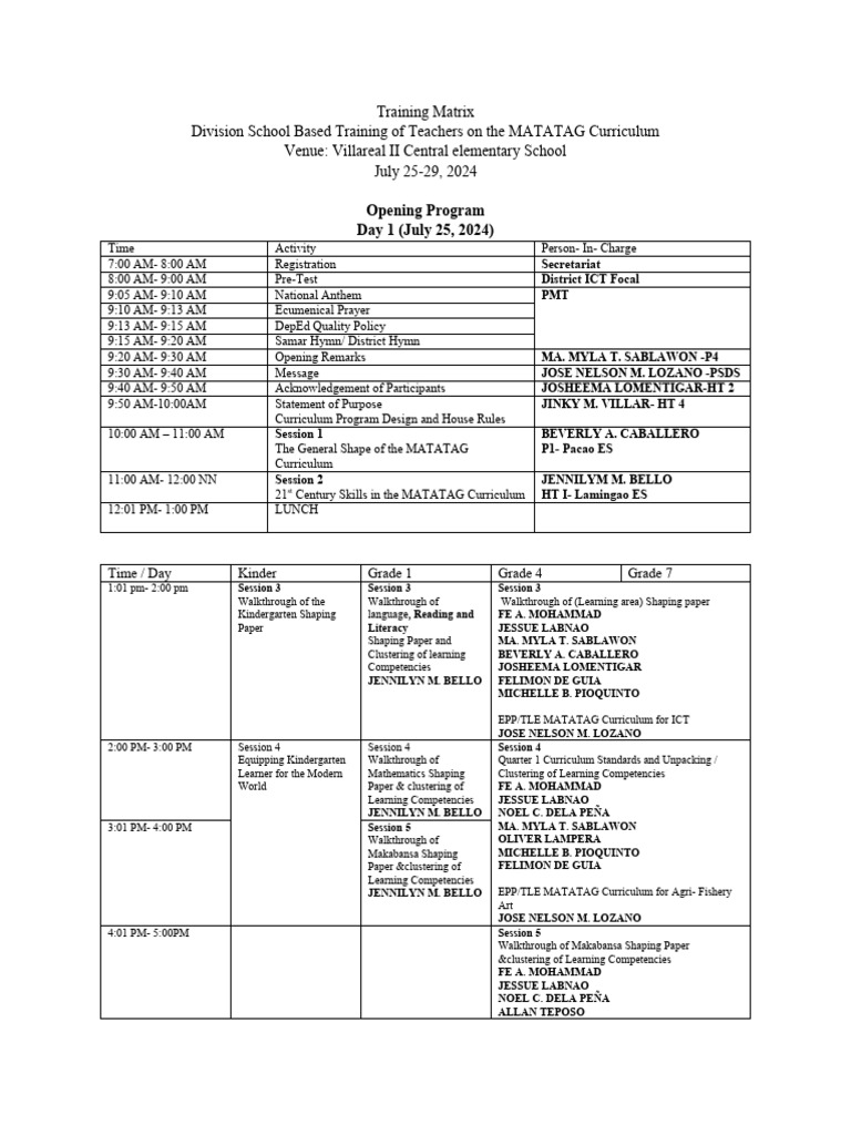 Training Matrix PDF Teachers Learning