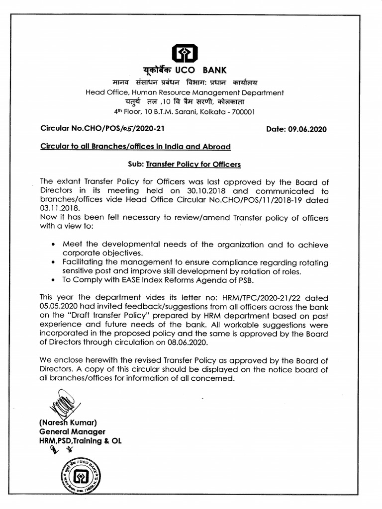 Transfer Policy Employee Transfer Staff Transfer SMB CART