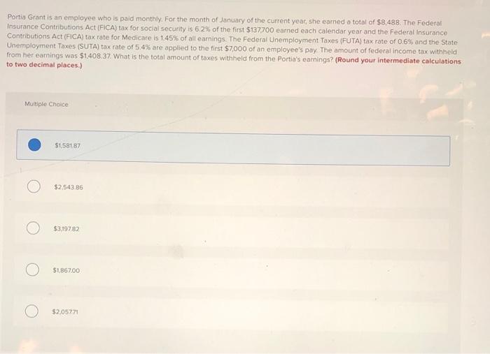 Portia grant is an employee who is paid monthly. Calculate fica taxes first, we. Portia grant is an employee who is paid monthly. First, we calculate the fica taxes for. Since portia's monthly earnings of $8,338 are more than.