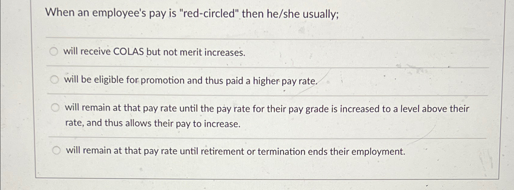 An employee sitting in the same pay grade for many years with a high level of seniority. This usually occurs when a highly tenured or. Red lining (or red circling) an employee's salary refers to freezing an employee's base pay. Here’s how some red circles come to be: