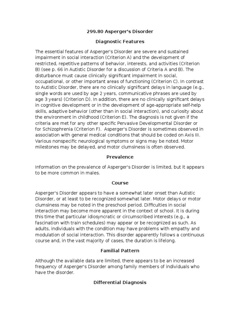 Asperger's Disorder PDF Asperger Syndrome Pervasive Developmental