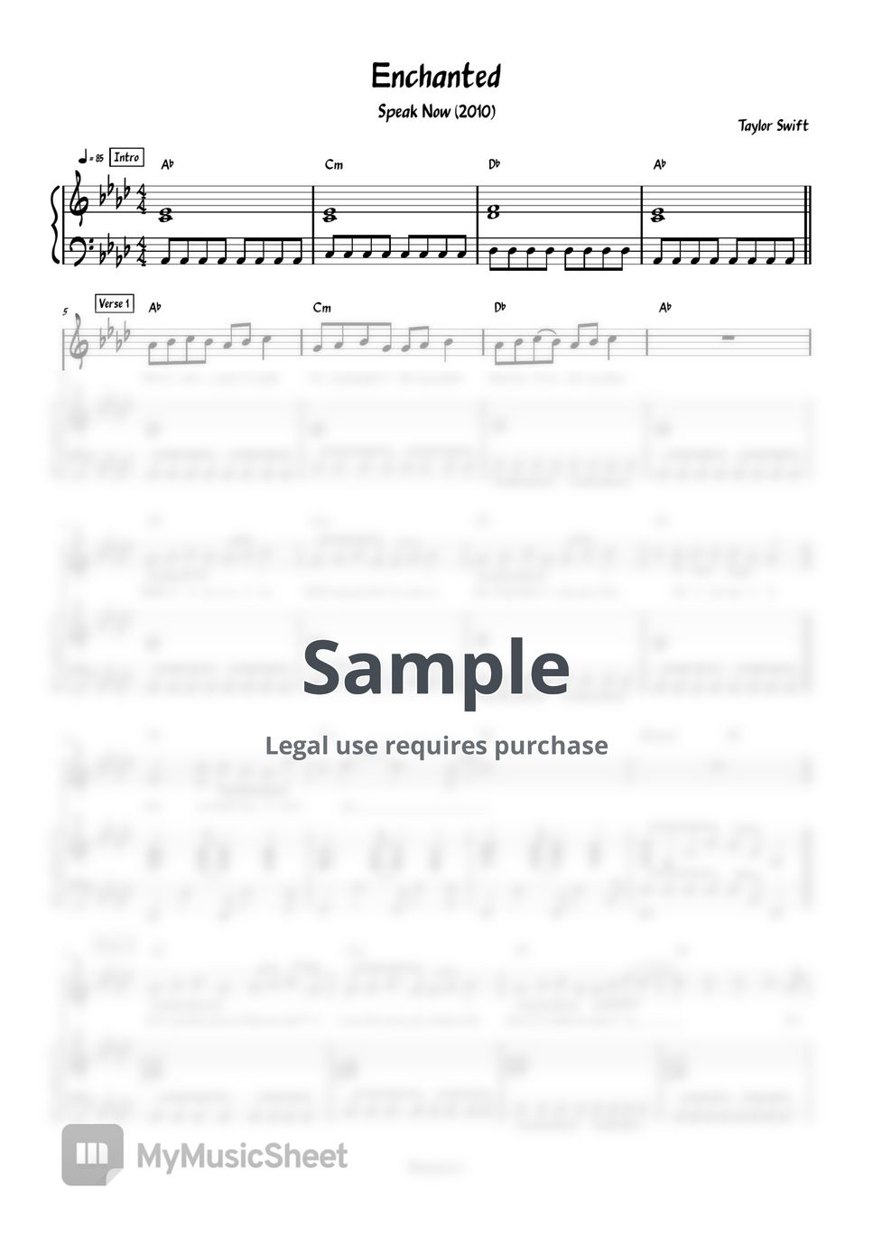 Taylor Swift Enchanted (Piano Sheet) by Pianella Piano Sheet