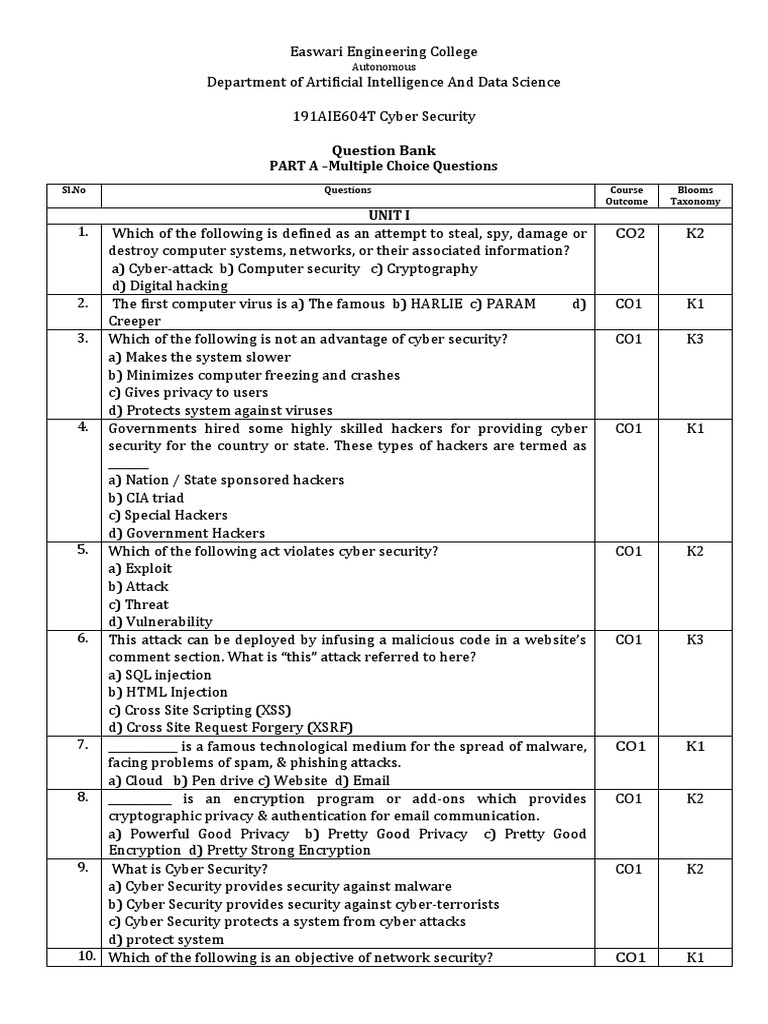 Cyber Security Question Bank PDF Denial Of Service Attack Security