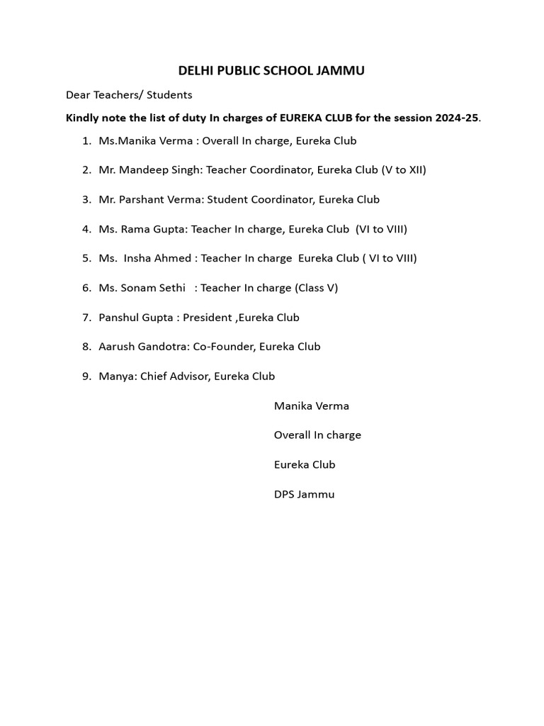 Duty Roster Eureka Club 2 PDF