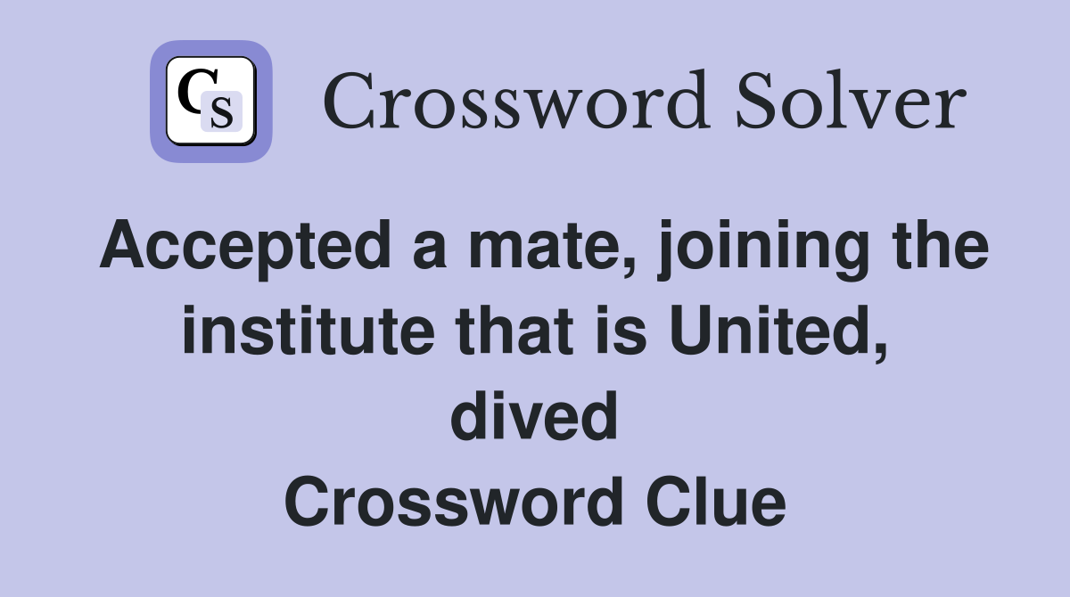 Accepted a mate, joining the institute that is United, dived