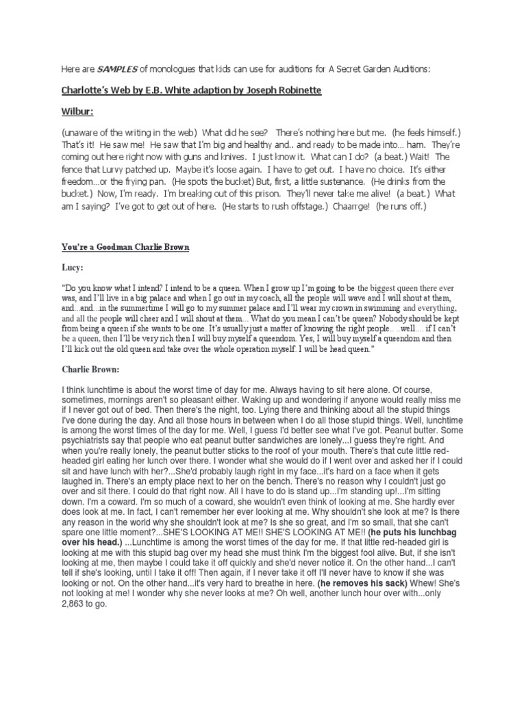 Sample Children's Monologues from Popular Plays and Stories for Theatre