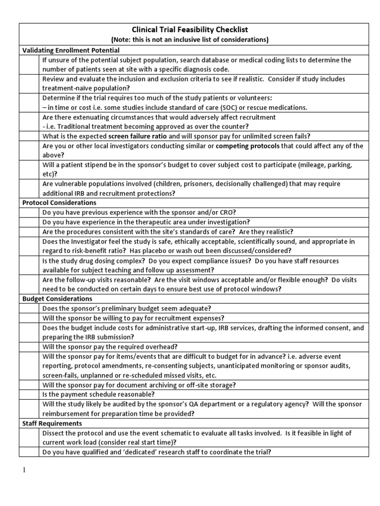 Clinical Trial Feasibility Checklist Clinical Trial Healthcare Quality
