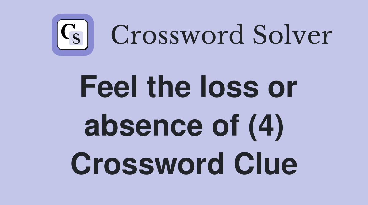Feel the loss or absence of (4) Crossword Clue Answers Crossword Solver