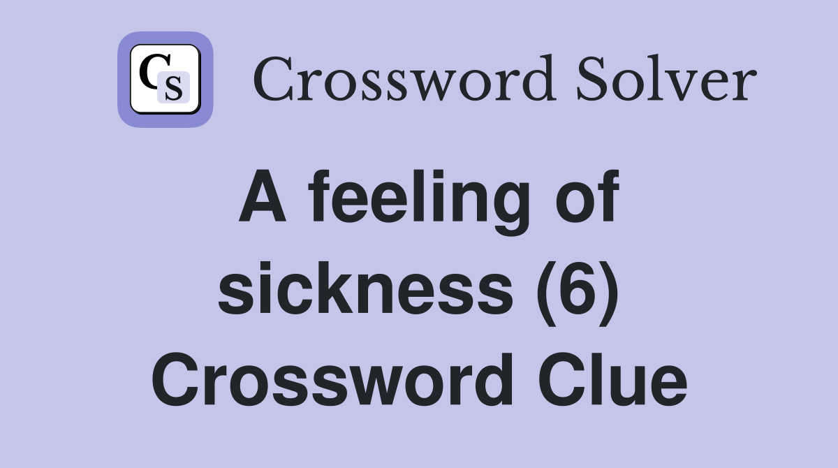 A feeling of sickness (6) Crossword Clue Answers Crossword Solver