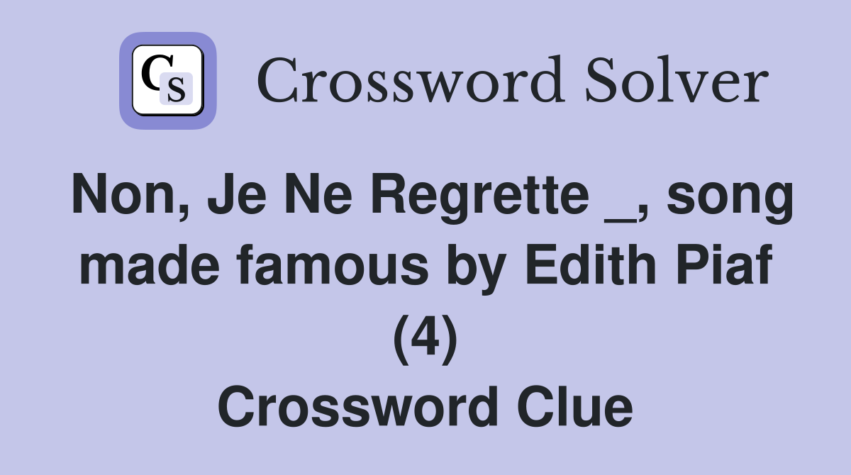 Non, Je Ne Regrette _, song made famous by Edith Piaf (4) Crossword