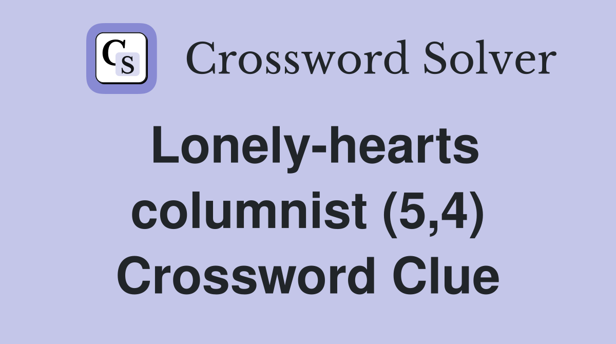 Lonelyhearts columnist (5,4) Crossword Clue Answers Crossword Solver