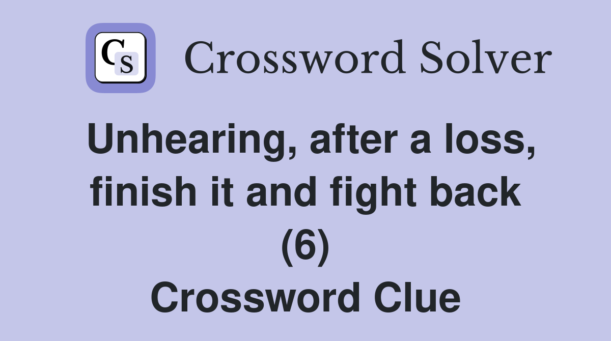 Unhearing, after a loss, finish it and fight back (6) Crossword Clue