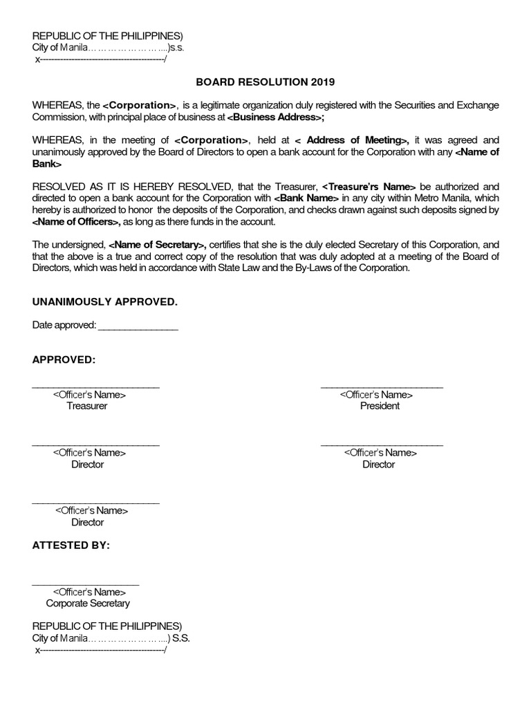 Sample Board Resolution For Bank Account Opening PDF Board Of