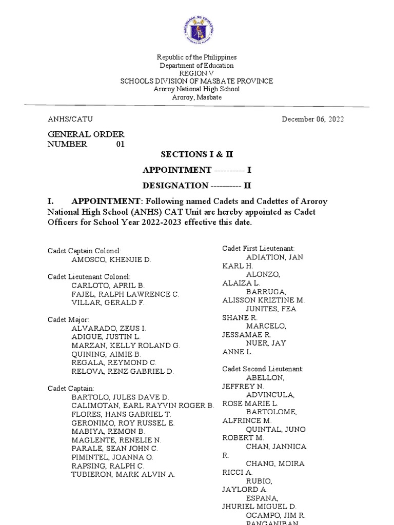 General Order 01 Download Free PDF Titles Military Units And