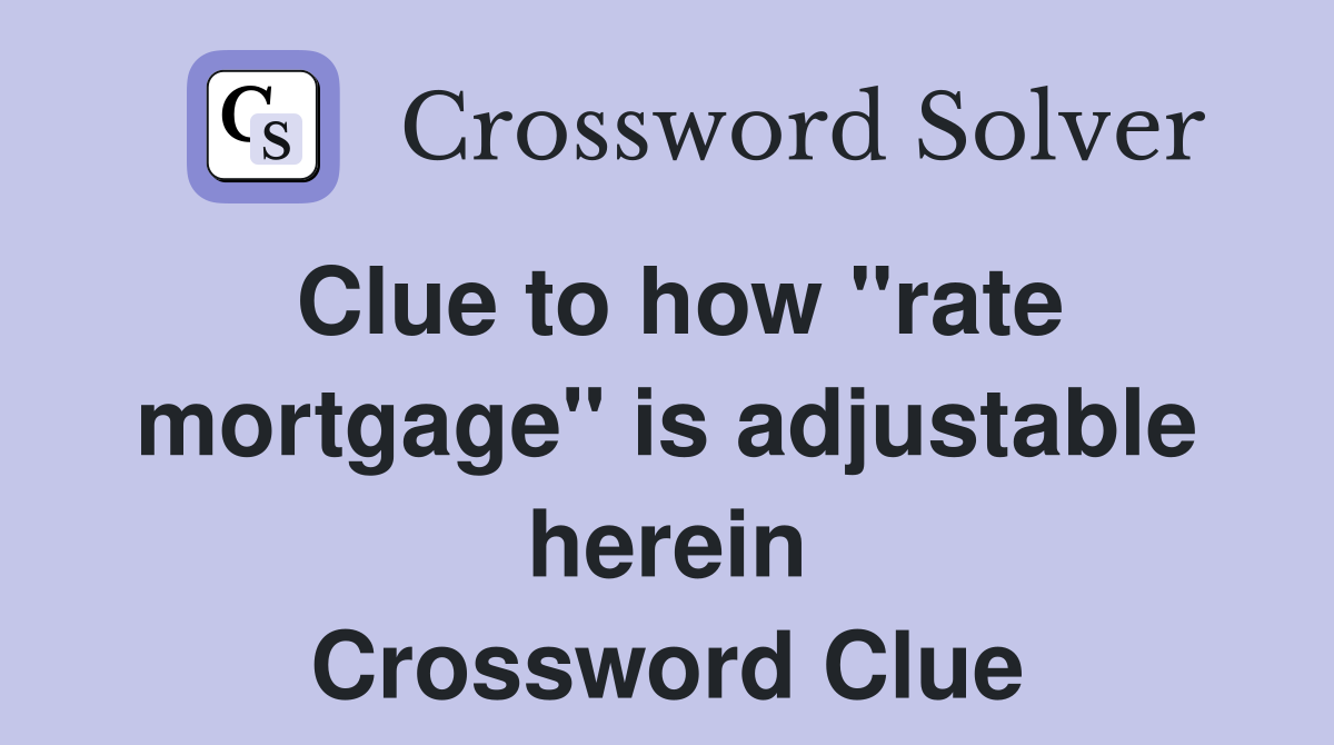Clue to how "rate mortgage" is adjustable herein Crossword Clue