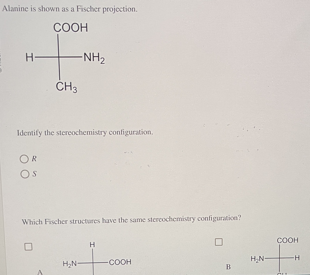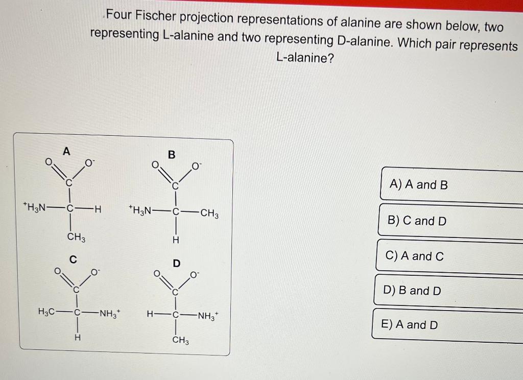 Study with quizlet and memorize flashcards containing terms like fischer projection glycine, fischer projection alanine, fischer projection. How can i draw the structures of the two enantiomers of alanine? You are not expected to remember the detailed structures of all these amino acids, but you should be prepared to draw the structures. Draw them as fischer projections.