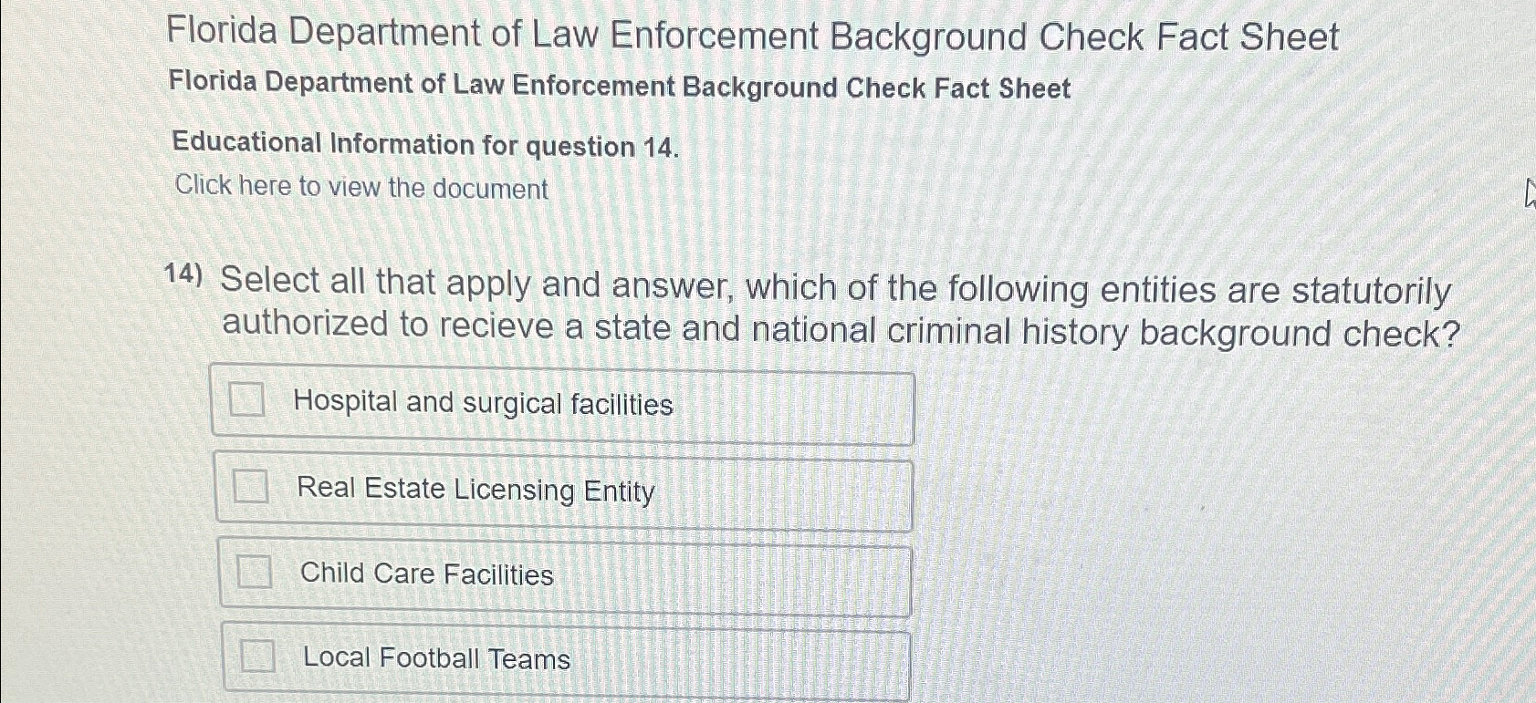 State and national criminal history information is available to. Click here to request a local background check. State and national criminal history information is available to governmental agencies for licensing and employment as authorized under florida law. 435.12, apd providers must register and initiate all criminal history checks through the clearinghouse. Florida department of law enforcement application for personal review.