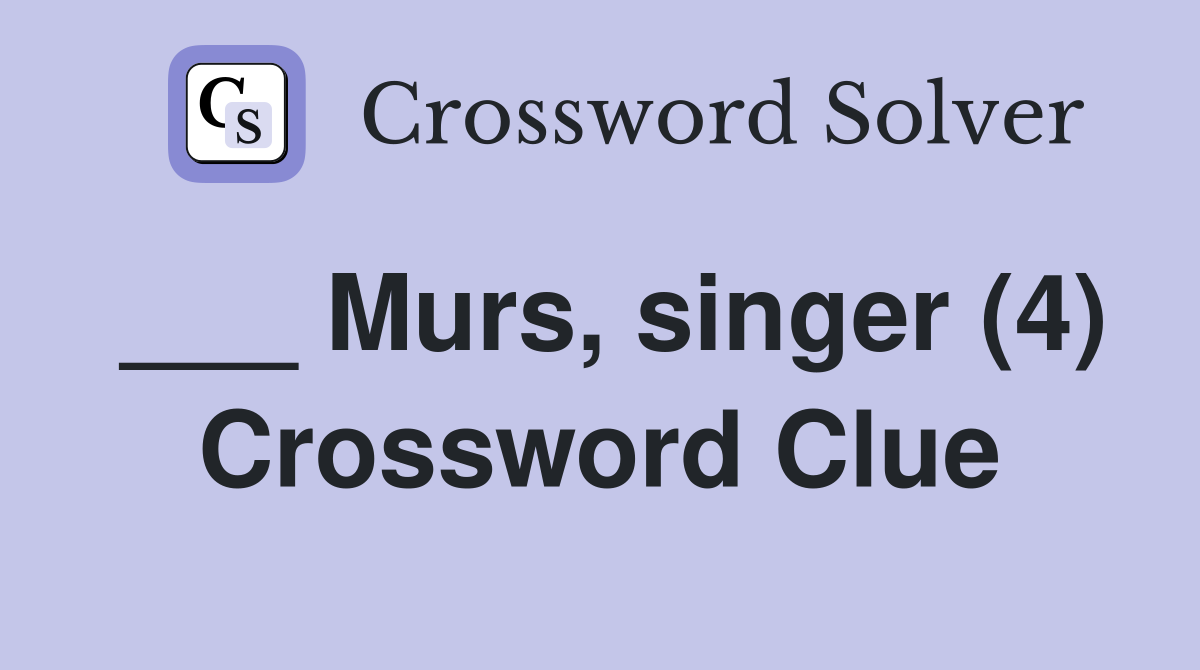Murs, singer (4) Crossword Clue Answers Crossword Solver