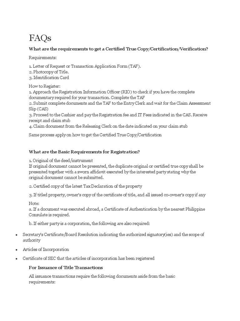 FAQs LRA Land Registration Authority Frequently Asked Questions PDF